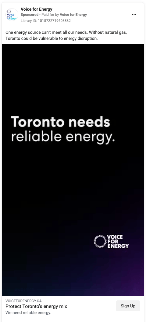 Voice for Energy, by comparison, has been taking a different and more politically aligned approach, suggesting that “they“ (councils, provincial or federal governments, depending on the ad version) are taking consumers' choices away and risking energy disruption.